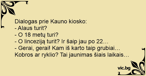 - O linceziją turit? Ir šaip jau po 22…