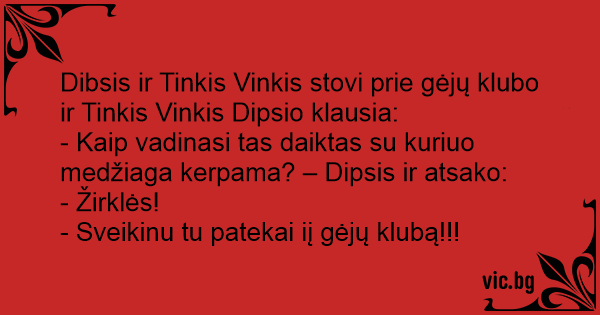 Dibsis ir Tinkis Vinkis stovi prie gėjų klubo ir Tinkis Vinkis Dipsio klausia: