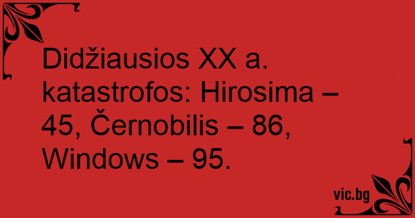 Didžiausios XX a. katastrofos: Hirosima – 45, Černobilis – 86, Windows – 95.