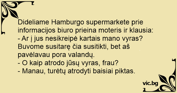 Dideliame Hamburgo supermarkete prie informacijos biuro prieina moteris ir klausia: