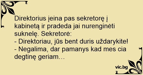 Direktorius įeina pas sekretorę į kabinetą ir pradeda jai nurenginėti suknelę. Sekretorė: