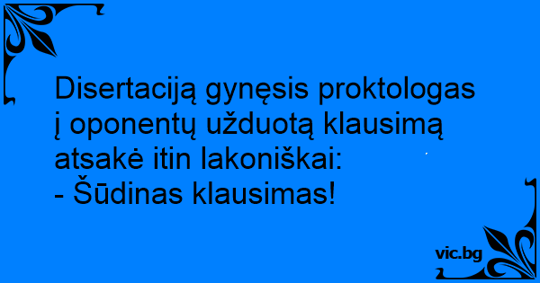 Disertaciją gynęsis proktologas į oponentų užduotą klausimą atsakė itin lakoniškai:
