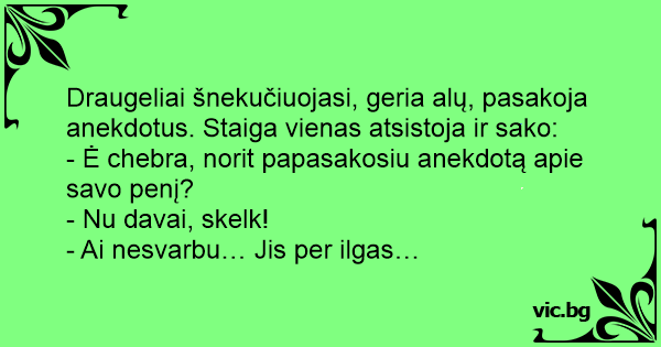 - Ė chebra, norit papasakosiu anekdotą apie savo penį?