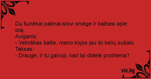 Du šunėkai patinai-stovi sniege ir kalbasi apie orą.