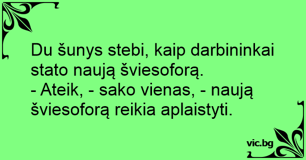 - Ateik, - sako vienas, - naują šviesoforą reikia aplaistyti.