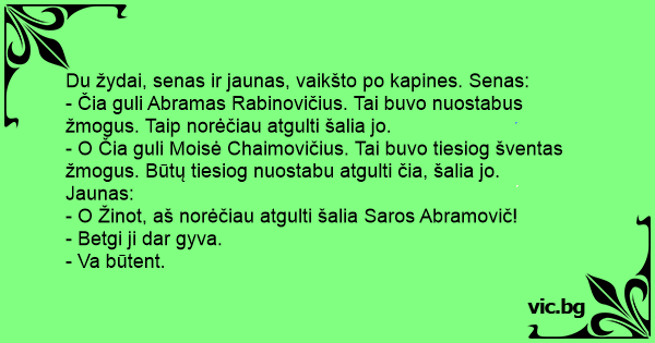 Du žydai, senas ir jaunas, vaikšto po kapines. Senas:
