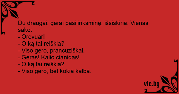 - Viso gero, bet kokia kalba.