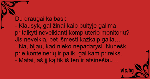 - Na, bijau, kad nieko nepadarysi. Nunešk prie konteinerių ir palik, gal kam prireiks.