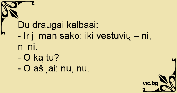 - Ir ji man sako: iki vestuvių – ni, ni ni.