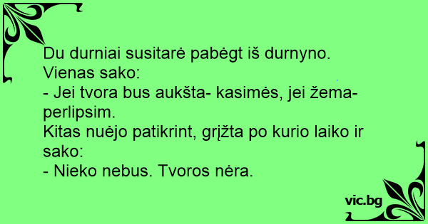 Du durniai susitarė pabėgt iš durnyno. Vienas sako: