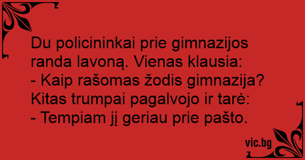 Du policininkai prie gimnazijos randa lavoną. Vienas klausia: