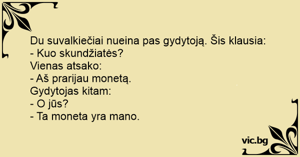 Du suvalkiečiai nueina pas gydytoją. Šis klausia: