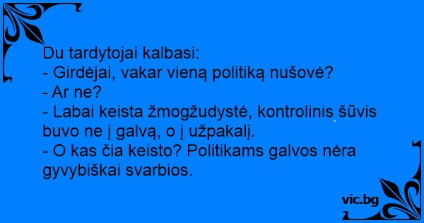 - O kas čia keisto? Politikams galvos nėra gyvybiškai svarbios.