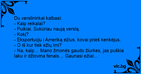 - Eksportuoju į Ameriką ežius, kovai prieš kenkėjus.