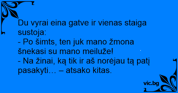 - Na žinai, ką tik ir aš norėjau tą patį pasakyti… – atsako kitas.