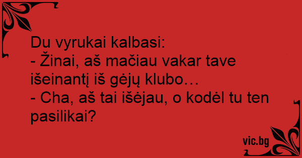 - Cha, aš tai išėjau, o kodėl tu ten pasilikai?