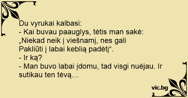 - Kai buvau paauglys, tėtis man sakė: „Niekad neik į viešnamį, nes gali
