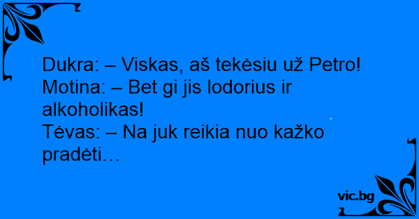 Dukra: – Viskas, aš tekėsiu už Petro!