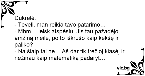 - Na šiaip tai ne… Aš dar tik trečioj klasėj ir nežinau kaip matematiką padaryt…