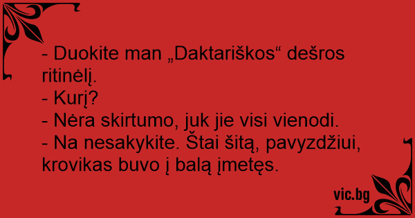 - Duokite man „Daktariškos“ dešros ritinėlį.