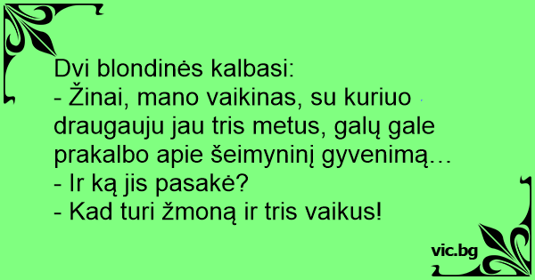 - Žinai, mano vaikinas, su kuriuo draugauju jau tris metus, galų gale prakalbo apie šeimyninį gyvenimą…