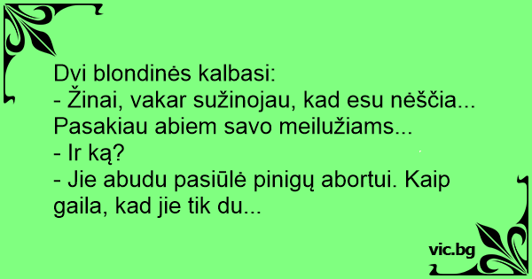 - Žinai, vakar sužinojau, kad esu nėščia... Pasakiau abiem savo meilužiams...