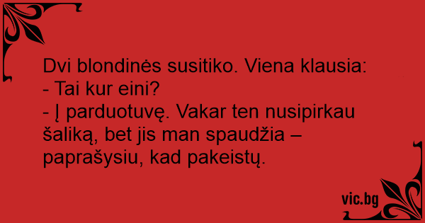 Dvi blondinės susitiko. Viena klausia:
