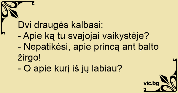 Dvi draugės kalbasi: - Apie...