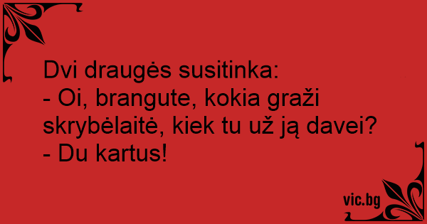 - Oi, brangute, kokia graži skrybėlaitė, kiek tu už ją davei?