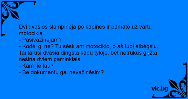 - Kodėl gi ne? Tu sėsk ant motociklo, o aš tuoj atbėgsiu.