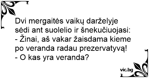 - Žinai, aš vakar žaisdama kieme po veranda radau prezervatyvą!