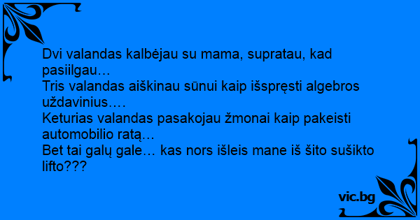Bet tai galų gale… kas nors išleis mane iš šito sušikto lifto???