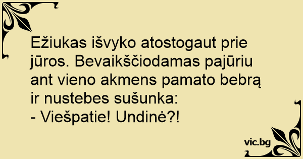 Ežiukas išvyko atostogaut prie jūros. Bevaikščiodamas pajūriu ant vieno akmens pamato bebrą ir nustebes sušunka: