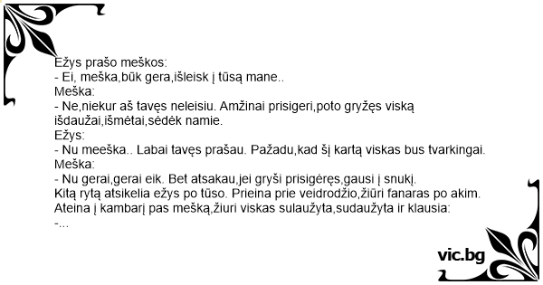 Ežys prašo meškos: - Ei,...