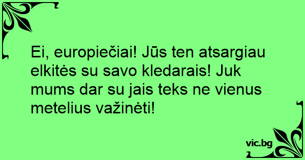 Ei, europiečiai! Jūs ten atsargiau elkitės su savo kledarais! Juk mums dar su jais teks ne vienus metelius važinėti!