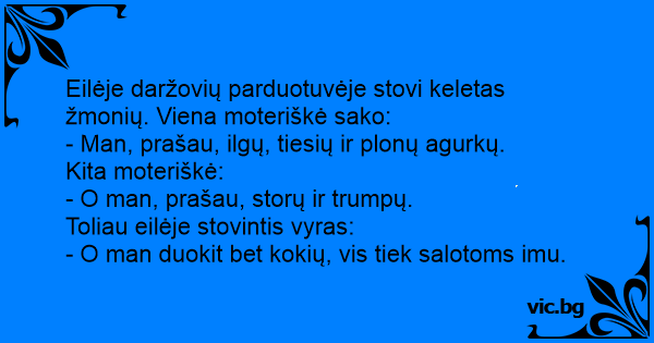 - Man, prašau, ilgų, tiesių ir plonų agurkų.