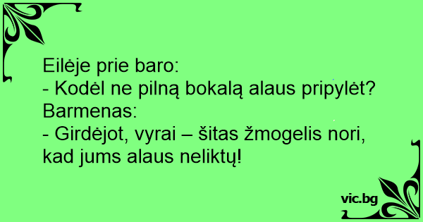 - Girdėjot, vyrai – šitas žmogelis nori, kad jums alaus neliktų!