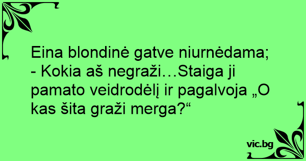 - Kokia aš negraži…Staiga ji pamato veidrodėlį ir pagalvoja „O kas šita graži merga?“