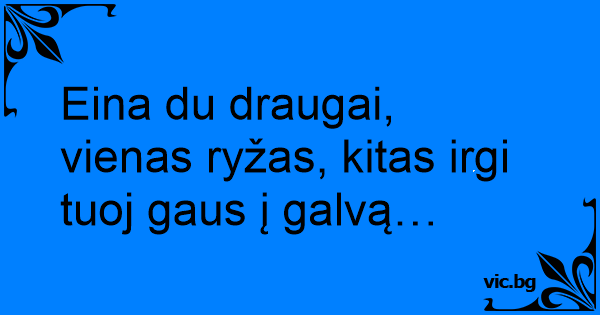 Eina du draugai, vienas ryžas, kitas irgi tuoj gaus į galvą…