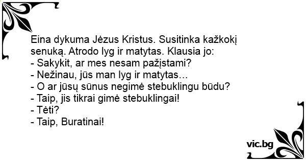 Eina dykuma Jėzus Kristus. Susitinka kažkokį senuką. Atrodo lyg ir matytas. Klausia jo: