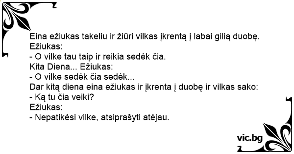 Dar kitą diena eina ežiukas ir įkrenta į duobę ir vilkas sako:
