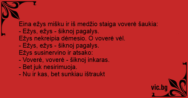 Eina ežys mišku ir iš medžio staiga voverė šaukia: