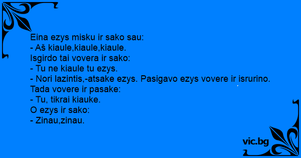 - Nori lazintis,-atsake ezys. Pasigavo ezys vovere ir isrurino.