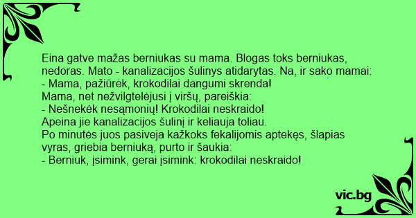Eina gatve mažas berniukas su mama. Blogas toks berniukas, nedoras. Mato - kanalizacijos šulinys atidarytas. Na, ir sako mamai: