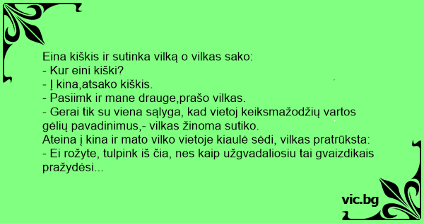 - Gerai tik su viena sąlyga, kad vietoj keiksmažodžių vartos gėlių pavadinimus,- vilkas žinoma sutiko.