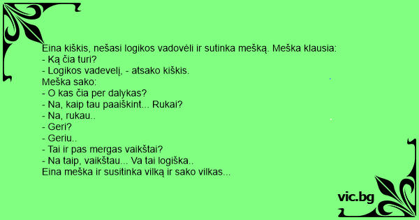 Eina kiškis, nešasi logikos vadovėli ir sutinka mešką. Meška klausia: