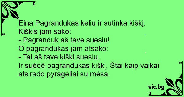 Eina Pagrandukas keliu ir sutinka kiškį. Kiškis jam sako: