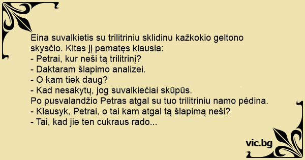 - Klausyk, Petrai, o tai kam atgal tą šlapimą neši?