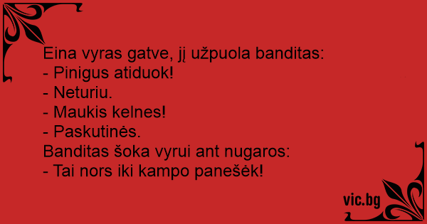 - Tai nors iki kampo panešėk!