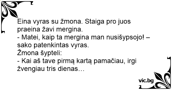 Eina vyras su žmona. Staiga pro juos praeina žavi mergina.